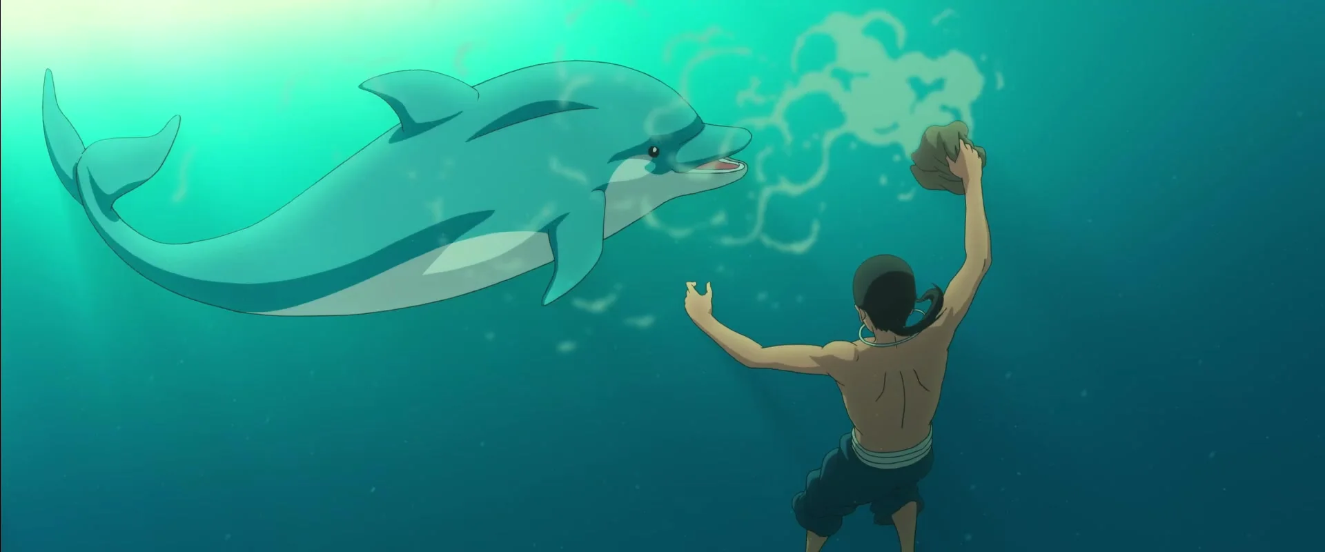В сердце океана сокрыт волшебный мир — обитель существ, управляющих течениями и сменой времён года. У них есть традиция: как только обитатель того мира достигает 16-летия, он должен на 7 дней отправиться в мир людей. Девушка Юна принимает облик красного дельфина и плывет посмотреть на человечество, но попадает в рыболовные сети. Ценой собственной жизни её спасает местный парень, и тогда Юна, чувствуя вину и ответственность, обращает его душу в маленькую рыбку и берет её с собой в волшебный мир.
