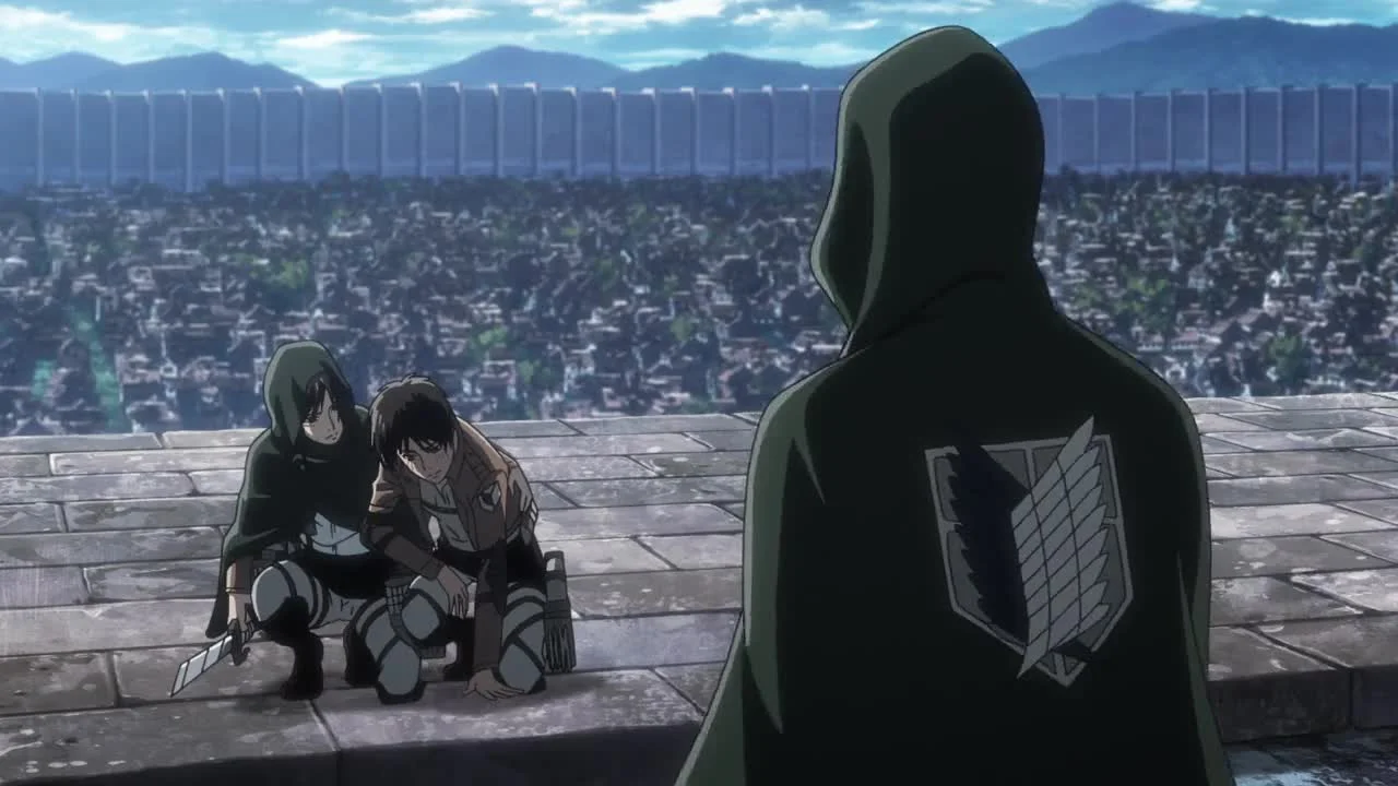 Уже многие годы человечество ведёт борьбу с титанами — огромными существами, которые не обладают особым интеллектом, зато едят людей и получают от этого удовольствие. После продолжительной борьбы остатки человечества построили высокую стену, окружившую страну людей, через которую титаны пройти не могли. С тех пор прошло сто лет, люди мирно живут под защитой стены. Но однажды подростки Эрен и Микаса становятся свидетелями страшного события — участок стены разрушается супертитаном, появившимся прямо из воздуха. Титаны нападают на город, и дети в ужасе видят, как один из монстров заживо съедает мать Эрена. Мальчик клянётся, что убьёт всех титанов и отомстит за человечество.